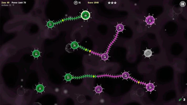 You can cure the organism by capturing enemy cells. To do this, draw a line between green antibody and red enemy cells. This will launch DNA tentacles which drain energy from enemy cell cores and eventually overtake them. Keep an eye on your energy supply and boost your attacks by cutting the tentacles. Capture all enemy cells to secure a zone. Cure all zones and the life form will survive…
