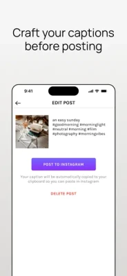 - Post directly to Instagram from the Grid with your caption