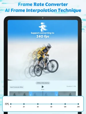 Convert videos to any frame rate you need. In addition to increasing the frame rate of normal videos to 60/120/240 fps, it can also convert high frame rate videos into cinematic 24fps videos and the most commonly used 30fps videos of smaller size to share.