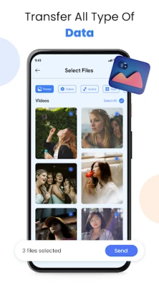 Smart Transfer My Data app enables you to send large files from one Android device to another seamlessly. You can clone your phone data, including contacts, photos, videos, apps & switch mobile easily.