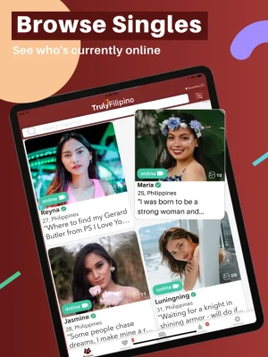 The best Filipino dating app. TrulyFilipino continually connects people throughout the world with Filipino singles from Luzon, Visayas and Mindanao whenever and wherever. With a large and curated user-base, whether you’re looking for serious relationships or marriage, you’ll surely find your perfect match here.
