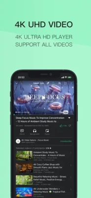 TubeMax - Pure,Advanced,Premium YT is an ad-free music player app that helps you watch high quality music videos with up to 4K UHD resolution, free background playback, and free picture-in-picture playback.