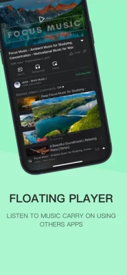 ● The floating video player application allows you to play videos in the background (picture-in-picture) when you exit TubeMax, while you can listen to music, surf the Internet, play games, etc.