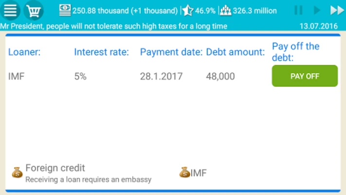 ★ Immerse into the world of ruling the whole country. ★ Learn what everyday tasks the President has to solve. ★ Create a prosperous country.