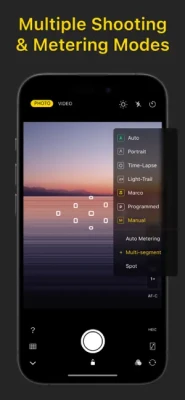 - Manual control ISO, Shutter, EV, White Balance, Focus, and multiple Metering modes