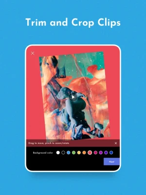 ‣ Crop, rotate, pinch-zoom, and set custom background colors.