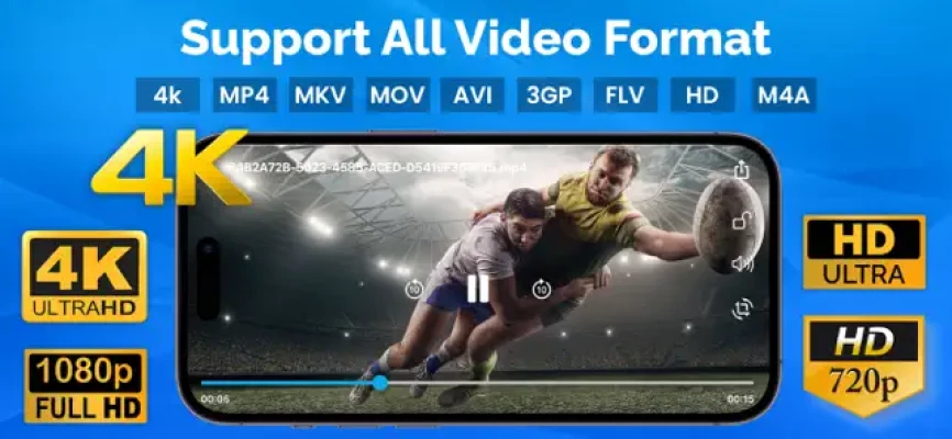 Video Player All Format Supports file formate like Ultra HD Videos, MP4 Videos, 3GP Videos, MKV Videos. MKV Player is support all video format 4k, HD, MKV, AVI, MOV, MP4, 3GP, MPEG and all music & audio file formats.
