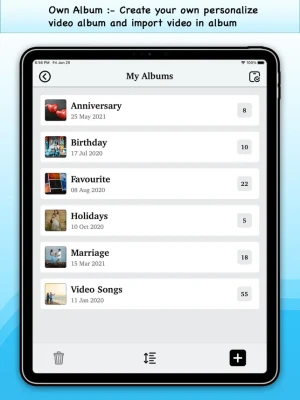 Video Player allows you to create your own video folder and manage videos with own personalize albums.