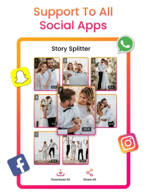 With Story Splitter: Longer Story, effortlessly split long videos for Instagram Stories, WhatsApp Status, TikTok, Facebook, and more. This user-friendly video cutter and story maker enables you to trim videos of any length with no limit and no watermark for seamless social sharing.