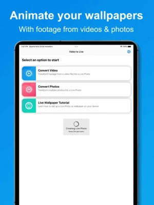 -- Photos to Live Photo Select up to 10 pictures from your camera roll and convert them into a dynamic Live Photo!