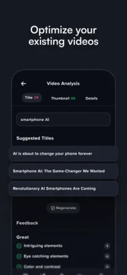 * Access to vidIQ's machine learning to easily find new ideas around related keywords which have higher search volumes but less competition from other creators