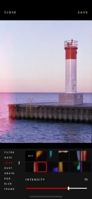 Create vintage edits with RE2C and such real effects as grain, date stamp, dust, light leakage, rgb, blur, film frame.