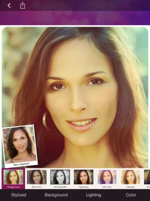 After automatic enhancement has been performed, you can compare the before and after photos to evaluate the changes. Meticulous users can tweak the settings (exclude some options they think unnecessary). What's more, you can apply various artistic effects to your retouched photos to make them look more appealing. Use 'Retro Sepia' and 'Black & White' effects to vintage your photos. Also try awesome background effects for a bit of a festive look. Finally, share your enhanced photos with the world via Facebook, Twitter and e-mail or save it to your photo album.