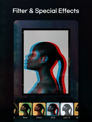 • Effects: Instantly elevate your videos with effects like glitch, retro, and zoom