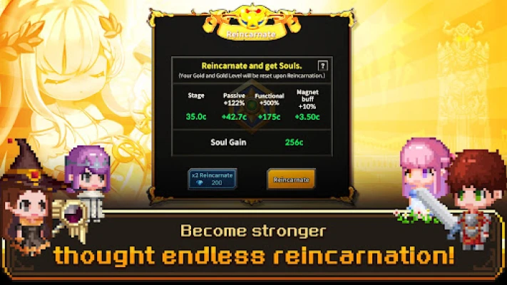 Use the materials that you get upon Reincarnation to increase your weapons' Soul Levels.