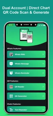 Web Scan for Dual WhatsApp account, Qr code scanner & generator, Private Browser, Photo vault, Text repeater & more awesome features.
