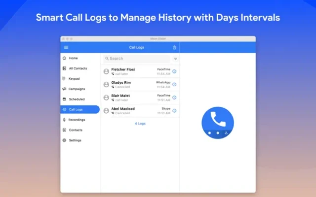 All-in-one call manager & dialer app, Moon Dialer is designed for individuals and businesses for worldwide calling. Mostly used in corporate houses and especially in 'Call Centers', the app boasts auto & manual dialing using built-in Phone calling, Skype, or FaceTime.