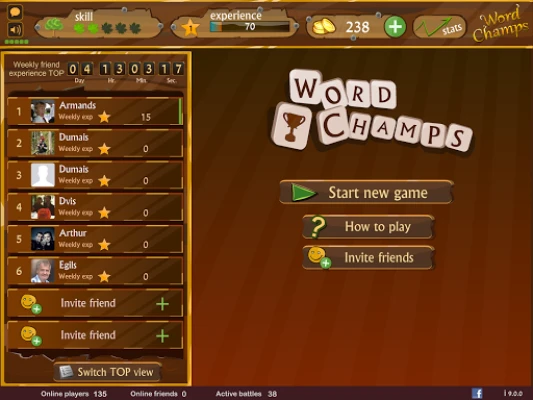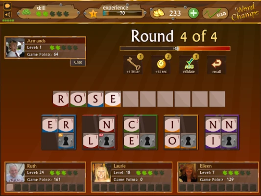 Gameplay: each user is given the same 20 random letters where each letter has some value assigned. In 40 seconds you need to come up with one word, which gives you as many points as possible. You can use no more than two letters from each colored block. It is up to you what strategy you choose to win the game. The one with the highest word score wins. Word Champs is a great game to practice spelling skills and build your vocabulary.