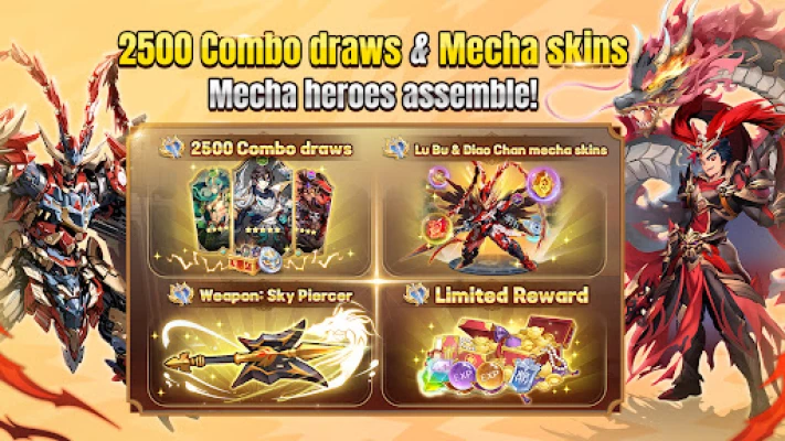 Special prizes for an awesome gaming experience! 2,500 draws to get exclusive mechas and weapons!