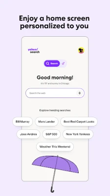 Navigate in the know with personalized weather updates and a summary of trending searches. Keep it classic with traditional search, or toggle to AI Chat to start a conversation, get help with projects, or get inspired.