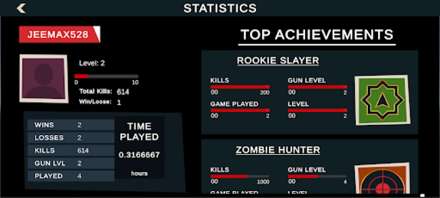 Monitor your total kills, games played, upgrades, and performance. Improve your strategy and dominate every level.